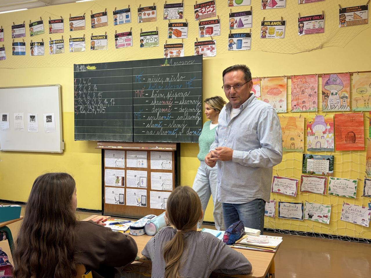 Pan ředitel se v každé třídě dětem představil a žáci měli také možnost pokládat nejrůznější dotazy, na které pan ředitel ochotně a s úsměvem odpovídal.