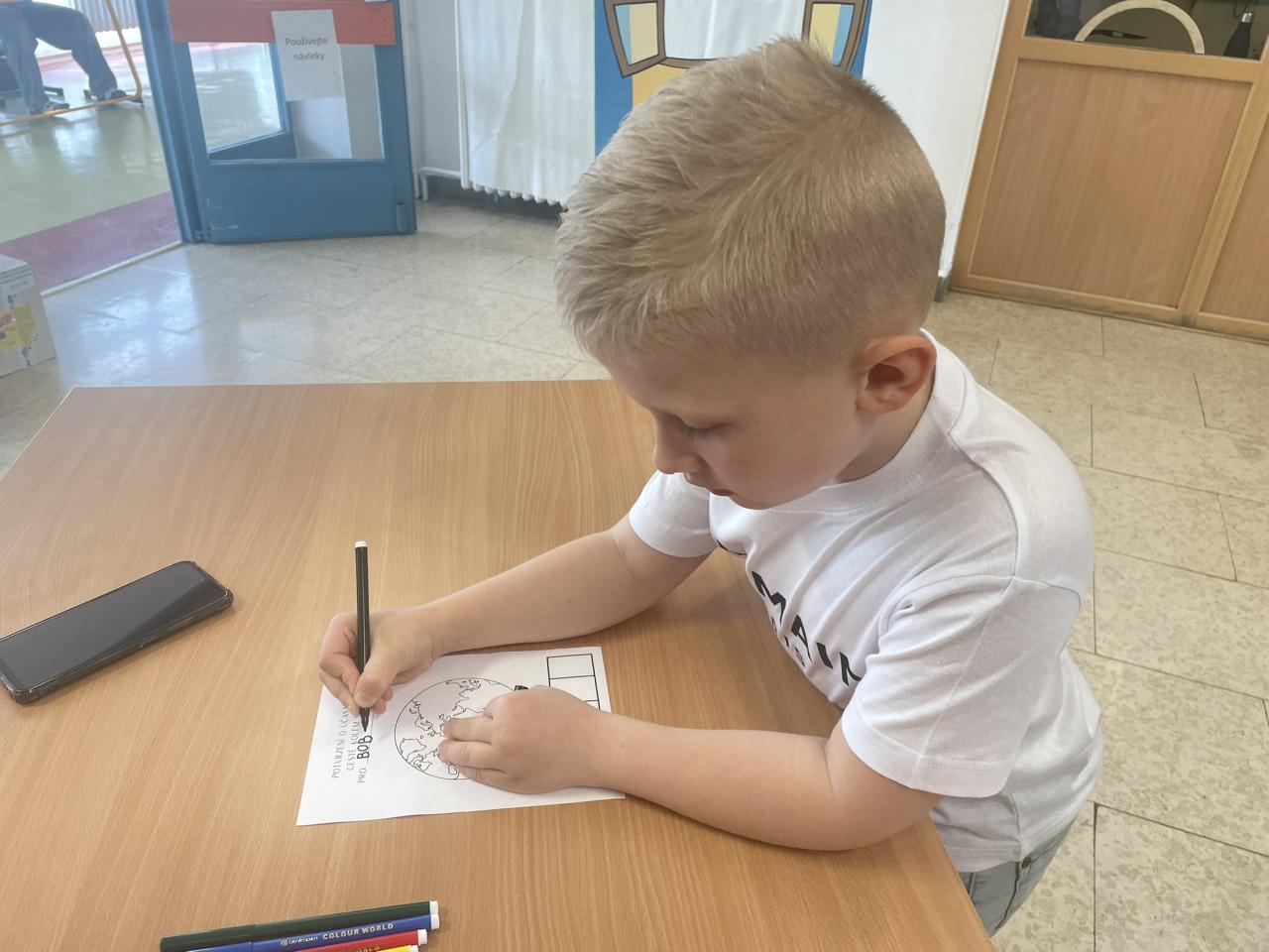 Letošní zápis budoucích prvňáčků na naší škole se nesl v duchu velkého dobrodružství – Cesty kolem světa. Děti společně se svými rodiči prošly pět stanovišť, z nichž každé reprezentovalo jeden kontinent. Na každém „zastavení“ je čekaly úkoly, které prověřily jejich připravenost na školu a zároveň je vtáhly do světa fantazie, objevování a her. Cestovatelé se vydali například do Austrálie, kde skládali podle velikosti tučňáky, do Ameriky, kde jezdili na dřevěném koni, v Africe počítali domorodce, v Asii zase rozeznávali barvy čínských draků a konečně v Evropě hledali stíny známých památek. Děti na každém stanovišti získaly symbolický odznak, který jim lepili do účastnického diplomu pomocníci z řad dětí 2.stupně.